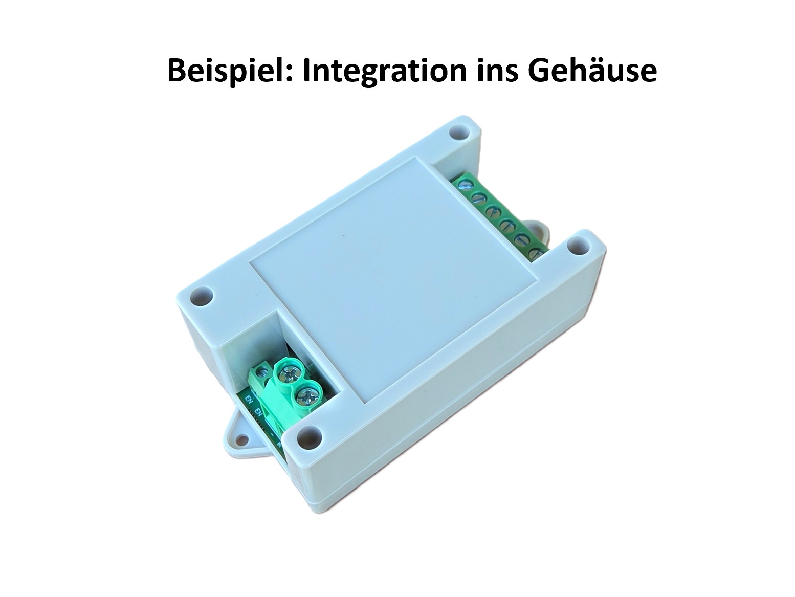 - Einzelne Bereiche der Leiterplatte und der Bauelemente können im Betrieb bis zu 150°C warm werden. Setzten Sie ein passendes Gehäuse ein.