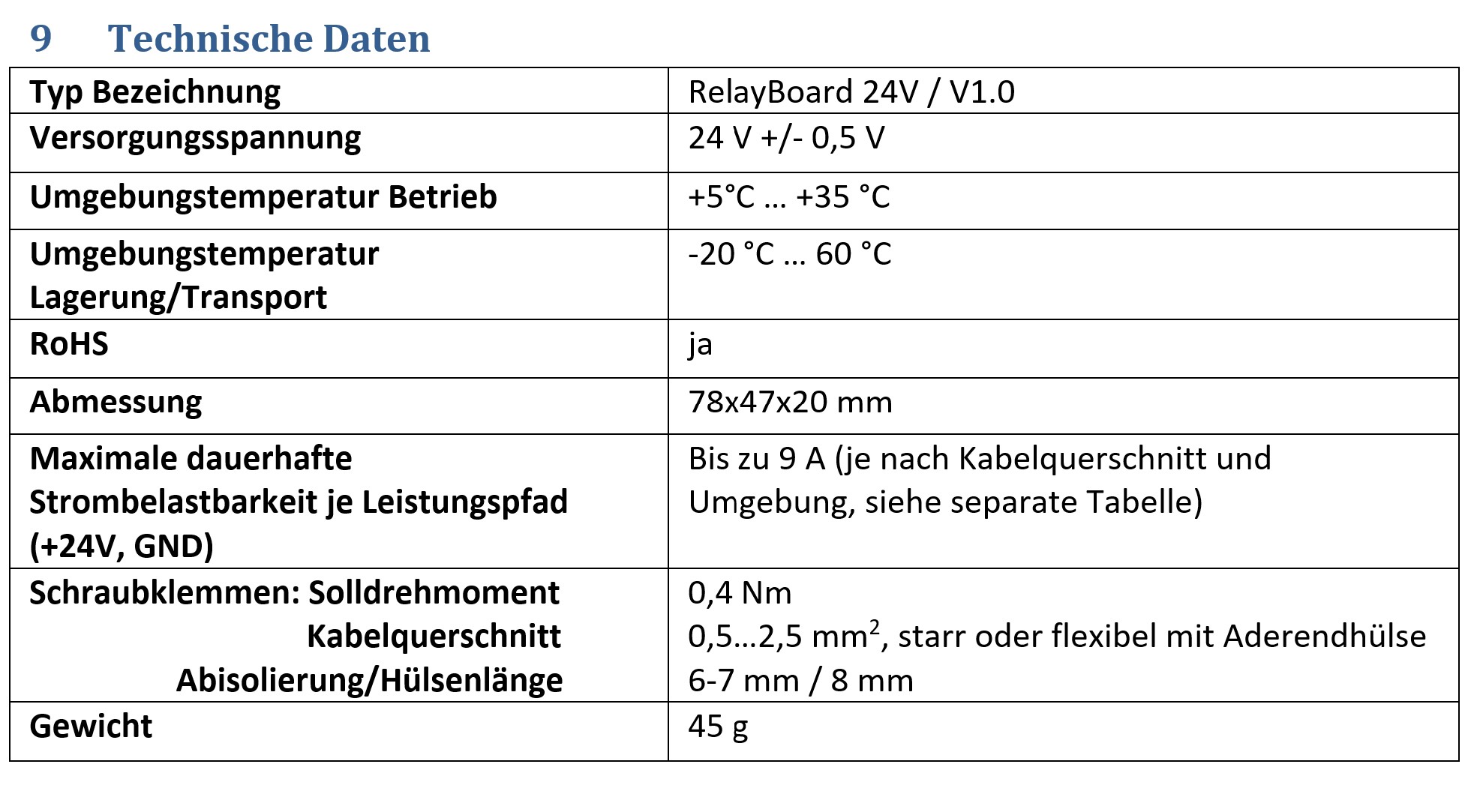 - Maximale dauerhafte Strombelastbarkeit je Leistungspfad (+24V, GND): bis zu 9 A (je nach Kabelquerschnitt und Umgebung)